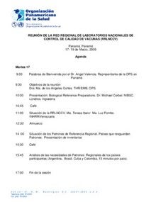 Agenda. Reunión de la Red Regional de Laboratorios Nacionales de Control de Calidad de Vacunas.