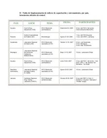 Tallleres de capacitación y entrenamiento. Grupo de Trabajo BPL. Tabla de implementación