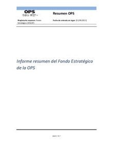 Informe resumen del Fondo Estratégico de la OPS