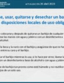 Cómo ponerse, usar, quitarse y desechar un barbijo, teniendo en cuenta las disposiciones locales de uso obligatorio