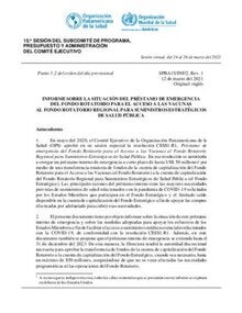 SPBA15/INF/2 - Informe sobre la situación del préstamo de emergencia del Fondo Rotatorio para el Acceso a las Vacunas al Fondo Rotatorio Regional para Suministros Estratégicos de Salud Pública