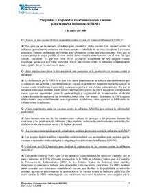 Preguntas y respuestas relacionadas con vacunas para la nueva influenza A(H1N1) 2009. (mayo 2009)