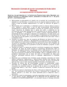 Declaración (Llamado de acción concertada) de Aruba sobre obesidad con especial atención a la obesidad infantil