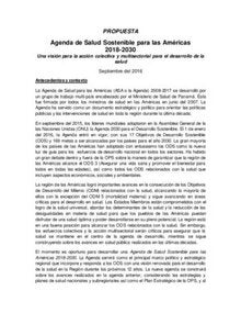 PROPUESTA - Agenda de Salud Sostenible para las Américas 2018-2030: Una visión para la acción colectiva y multisectorial para el desarrollo de la salud, Septiembre del 2016
