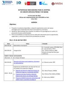 Agenda - Estrategias innovadoras para el control de cáncer cervicouterino y de mama 15?16 de abril del 2013 Oficina de la representación de la OPS/OMS en Perú