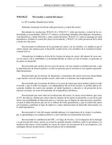 WHA58.22. Prevención y control del cáncer. OMS, 2005