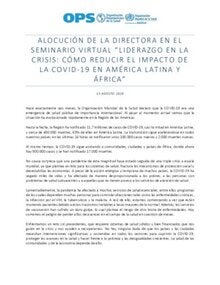 Alocución de la Directora en el seminario virtual “Liderazgo en la crisis: cómo reducir el impacto de la COVID-19 en América Latina y África”
