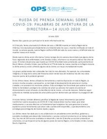 Rueda de prensa semanal sobre COVID-19: Palabras de apertura de la directora, 14 julio 2020