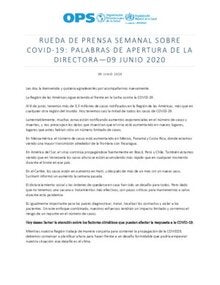 Rueda de prensa semanal sobre COVID-19: Palabras de apertura de la Directora, 9 de junio de 2020