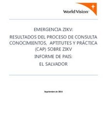 World Vision - Emergencia ZIKV: Resultados del proceso de consulta conocimientos, actitudes y prácticas (CAP) sobre ZIKV. Informe de país: El Salvador; Septiembre 2016
