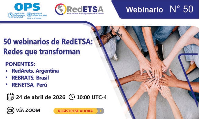 RedETSA celebra 50 webinarios promoviendo el intercambio de experiencias, compartiendo conocimiento y consolidando capacidades técnicas en las Américas. para fortalecer la colaboración regional en Evaluación de Tecnologías Sanitarias (ETS).