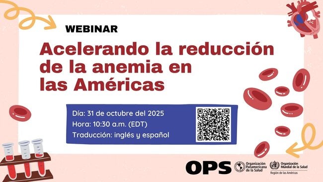 Únase a nosotros el viernes 31 de octubre a las 10:30 a.m. (hora de Washington, D.C. o EDT) para el seminario web "Acelerando la reducción de la anemia en las Américas". El evento describirá con más detalle la situación de la anemia en las Américas y presentará estas herramientas, junto con una discusión sobre cómo los países pueden aprovecharlas para acelerar la reducción de la anemia.