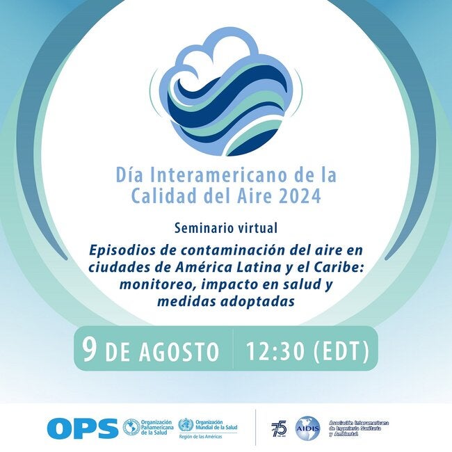 El seminario virtual se celebra el viernes, 9 de agosto de 2024, con motivo del Día Interamericano de la Calidad del Aire (DIAIRE). El DIAIRE, que organizan en conjunto la OPS y la Asociación Interamericana de Ingeniería Sanitaria y Ambiental (AIDIS), fue instituido en 2002 al considerar el volumen de enfermedades en América Latina y el Caribe atribuibles a la contaminación del aire. El tema de la edición de 2024 es Juntos en América trabajando por la calidad del aire, la salud y el clima.