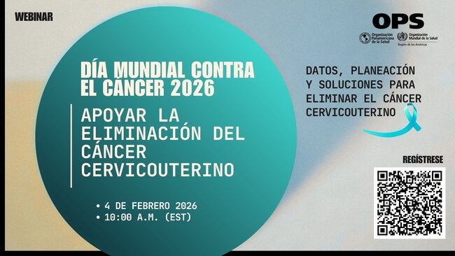 Únase a nosotros el miércoles 4 de febrero a las 10:00 a.m. (hora de Washington, D.C. o EST) para el evento "Día Mundial Contra el Cáncer: Apoyo a la Eliminación de Cáncer Cervicouterino".