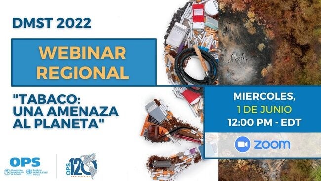 Como parte de las actividades organizadas en el marco del Día Mundial Sin Tabaco de 2022: envenena nuestro planeta, la OPS organizará el webinar regional "Tabaco, una amenaza al planeta", el 1 de junio de 2022 a las 12:00 p. m. EDT.