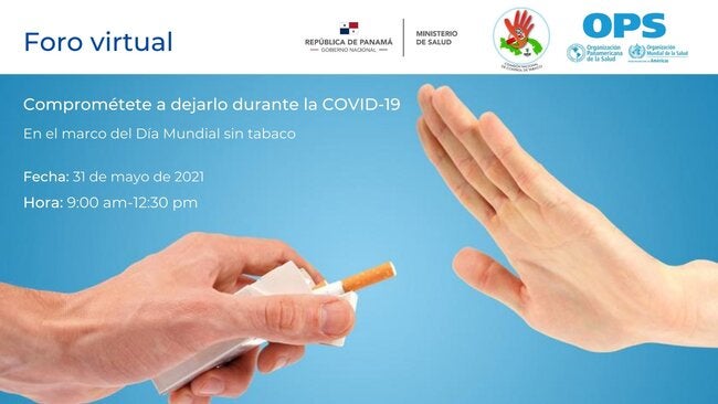 El Ministerio de Salud, a través de la Dirección de Promoción de la Salud en coordinación con la Comisión Nacional para el Control de Tabaco y la Organización Panamericana de la Salud/Organización Mundial de la Salud (OPS/OMS) en Panamá, hacen una cordial invitación a participar en el Foro virtual "Comprométete a dejarlo durante la COVID-19", que se realizará el próximo 31 de mayo de 2021, a las 9:00 a.m. (hora de Panamá).