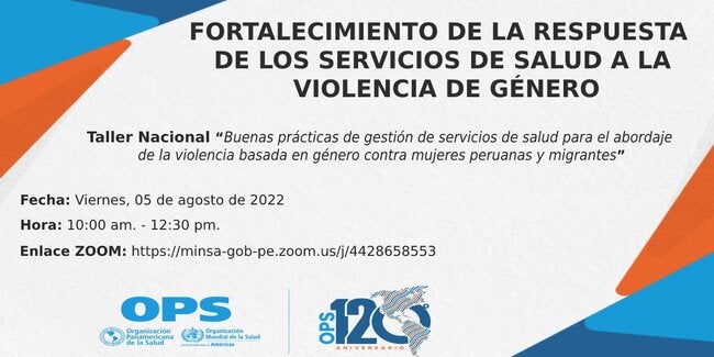 El Ministerio de Salud de Perú y la Organización Panamericana de la Salud/Organización Mundial de la Salud (OPS/OMS) como parte de la implementación del proyecto conjunto de fortalecimiento de la respuesta del sistema de salud para atender la violencia de género contra mujeres migrantes, el cual cuenta con la cooperación de la Oficina de Población, Refugiados y Migración (PRM) del Departamento de Estado de los Estados Unidos, realizarán el Taller Nacional “Buenas prácticas de gestión de servicios de salud para el abordaje de la violencia basada en género contra mujeres peruanas y migrantes”.