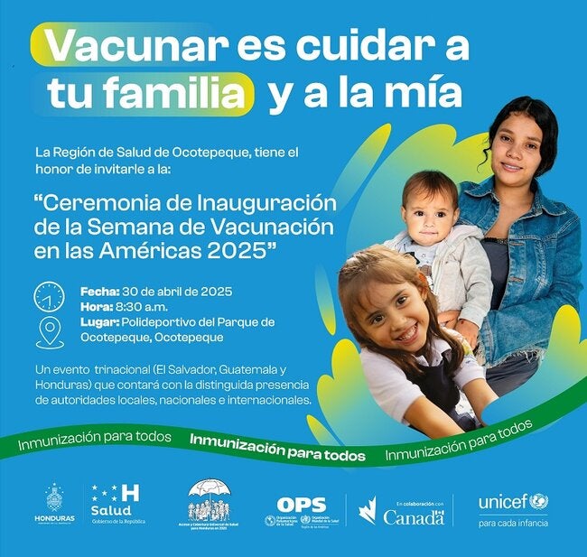 Inauguración de la SVA-jornada interfronteriza HND-ELS-GUT Hoy se realiza en Ocotepeque, Honduras, la celebración interfronteriza de la SVA, entre Honduras, El Salvador y Guatemala Eventos de Días Internacionales de Salud Inmunización Honduras