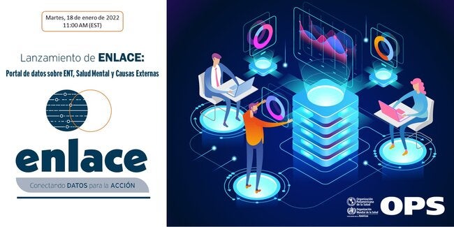 El Departamento de Enfermedades No Transmisibles y Salud Mental (NMH) de la OPS le invita a participar en el lanzamiento de “ENLACE, el Portal de datos de la OPS sobre Enfermedades No Transmisibles (ENT), Salud Mental y Causas Externas” el martes, 18 de enero de 2022, de 11:00 am a 12:30 pm (EST).