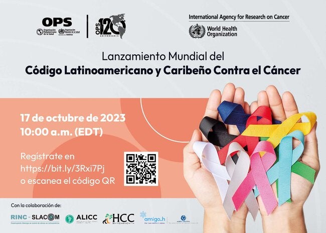 Participe el martes 17 de octubre de 2023 a las 10:00 a. m. (hora de Washington D.C. o EDT) en el lanzamiento Mundial del Código Latinoamericano y Caribeño Contra el Cáncer, organizado de forma conjunta por Organización Panamericana de la Salud (OPS) y la Agencia Internacional de Investigación sobre el Cáncer (IARC), con el apoyo de la Sociedad Latinoamericana y del Caribe de Oncología Médica (RINC-SLACOM), Asociación Latina e Ibérica Contra el Cáncer (ALICC), Amigos da Oncologia e Hematologia (amigo_h) Healthy Caribbean Coalition (HCC) invitan al lanzamiento del Código Latinoamericano y Caribeño Contra el Cáncer.