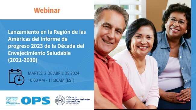 Acompáñenos el martes 2 de abril, de 10:00 a 11:30 am (hora de Washington DC) en el seminario virtual "Lanzamiento en la Región de las Américas del informe de progreso 2023 de la Década del Envejecimiento Saludable (2021-2030)"