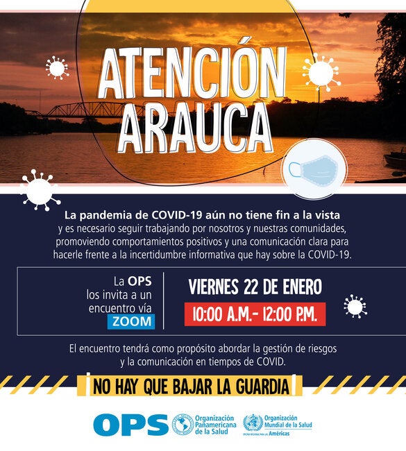 La OPS los invita a un encuentro vía Zoom el viernes 22 de enero, de 10:00 a.m. a 12 m. con el propósito abordar la gestión de riesgos y la comunicación en tiempos de COVID.