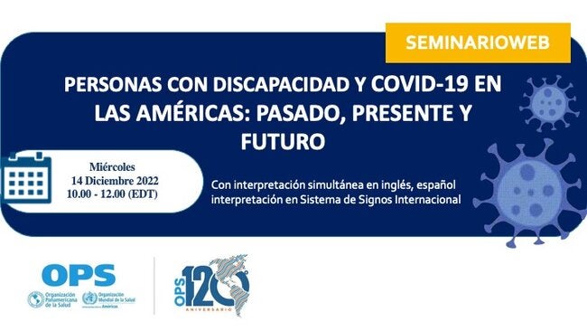 Participe con nosotros el miércoles 14 de diciembre de 2022 en el seminario web "Personas con discapacidad y COVID-19 en las Américas: Pasado, presente y futuro", el segundo de una serie de dos partes, que estará enfocado en las implicaciones en las Américas del informe mundial de la OMS sobre discapacidad y salud, publicado recientemente. En él se abordará cómo construir un sistema de salud más inclusivo y equitativo para las personas con discapacidad.