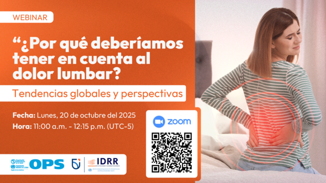 Acompáñenos el lunes 20 de octubre a las 11:00 a.m. (hora de Washington, D. C. o EDT) en el seminario web, ¿Por qué deberíamos tener en cuenta al dolor lumbar? Tendencias globales y perspectivas. El evento busca fomentar la concienciación, el conocimiento y la claridad en el manejo del dolor lumbar, especialmente en la atención primaria de salud. Un enfoque clave es promover una atención basada en la evidencia y centrada en la persona mediante la difusión de las primeras directrices de la OMS para el manejo del dolor lumbar primario crónico en atención primaria y comunitaria, destacando las intervenciones recomendadas y no recomendadas.