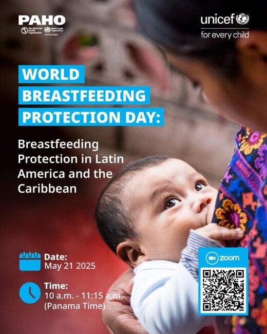 Acompáñenos el miércoles 21 de mayo de 2025 a las 11:00 a. m. (EDT, hora de Washington, D.C.) al seminario web "Protección de la Lactancia Materna en América Latina y el Caribe", durante el Día Mundial de la Protección de la Lactancia Materna 2025 (21 de mayo). UNICEF y la OPS han organizado este evento para apoyar a los gobiernos de América Latina y el Caribe y a las principales partes interesadas en el fortalecimiento, la implementación, el seguimiento y la aplicación de los marcos legales alineados con el Código.