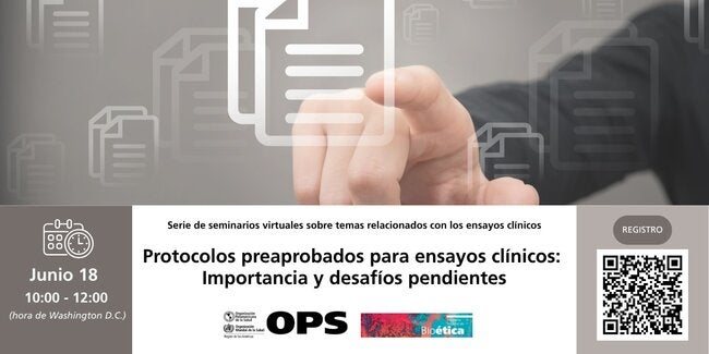 El Programa Regional de Bioética y la Unidad de Calidad y Regulación de Medicamentos y Tecnologías Sanitarias de la OPS ofreció el 18 de junio de 2025 un nuevo seminario de la serie enfocada en ensayos clínicos.