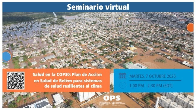 Este seminario virtual está organizado por la Organización Panamericana de la Salud (OPS) y las Coaliciones temáticas regionales en América Latina y el Caribe. Con la COP30 a la vuelta de la esquina (Belém, Brasil, 10-21 de noviembre), este seminario virtual conjunto reúne a los Estados miembros, los ministerios de salud, las entidades de las Naciones Unidas y los socios para consolidar una visión compartida, garantizar la coordinación entre los distintos actores e identificar medidas inmediatas que puedan promoverse en las Américas y que tengan relevancia a nivel mundial.