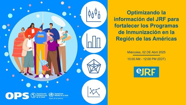 El miércoles 02 de Abril de 10:00 a.m. a 12:00 p.m. (hora de Washington DC) nos reuniremos en el seminario virtual "Optimizando la información del JRF para fortalecer los Programas de Inmunización en la Región de las Américas", organizado por el Programa Especial de Inmunización Integral (CIM) de la OPS.