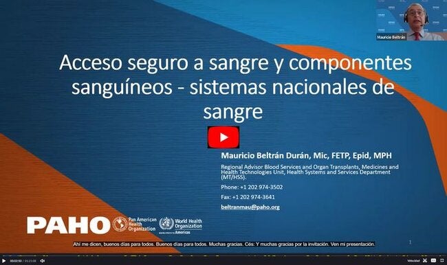 Mauricio Beltrán Durand, Asesor Regional Servicios de Sangre y Trasplantes. OPS