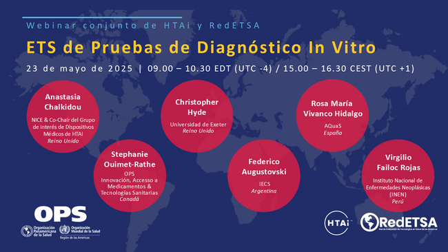 La Organización Panamericana de la Salud y la Red de Evaluación de Tecnologías en Salud de las Américas (RedETSA), en conjunto con Health Technology Assessment international (HTAi), tienen el gusto de invitarles a una nueva edición del Programa de Webinarios de RedETSA: