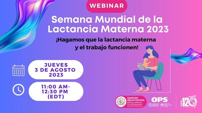 Únase a nosotros, el 3 de agosto, para celebrar la Semana Mundial de la Lactancia Materna 2023. El seminario web se centrará en permitir la lactancia materna en el lugar de trabajo. La Organización Mundial de la Salud recomienda que los bebes reciban lactancia maternal exclusive los primeros seis meses de vida, seguidos por la introducción de alimentos complementarios nutricionalmente apropiados y seguros mientras se continua con la lactancia maternal hasta los dos años o más. El apoyo a los padres trabajadores para seguir estas recomendaciones requiere:
