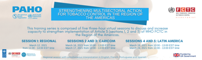 Esta sesión será de alcance subregional para el Caribe y proporcionará más información sobre el artículo del 5 CMCT de la OMS (sección 3), que incluye un panorama subregional, los desafíos que enfrentan algunos países de la subregión y herramientas para el desarrollo de planes por país.
