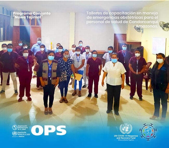 Con la finalidad de fortalecer las competencias y desarrollo de habilidades y destrezas del personal de salud de Condorcanqui, se realizó un taller de emergencias obstétricas. La capacitación fue complementada con la entrega de 66 trajes anti shock, los que ante una emergencia obstétrica ayudan a reducir la mortalidad materna.