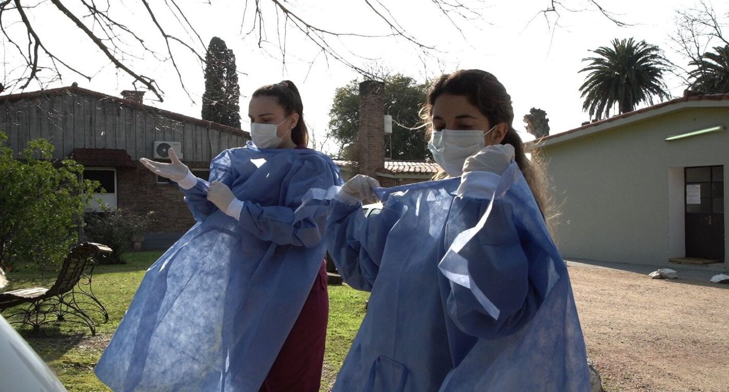 Juliana Laporte, médica del Centro Giordano de ASSE, comenzó hace unos meses a trabajar con foco en las personas internadas en residenciales, a colaborar con diferentes estrategias para intentar disminuir la posibilidad de que llegue el virus y, para el caso en que suceda, prever el aislamiento, el seguimiento y el apoyo. El trabajo que se hace en equipo va desde contemplar lo emocional y el estado de salud de las personas que viven allí, hasta los temas más prácticos como las capacitaciones para el personal para evitar infecciones y el correcto uso del tapabocas y la alfombra sanitaria, entre otros.