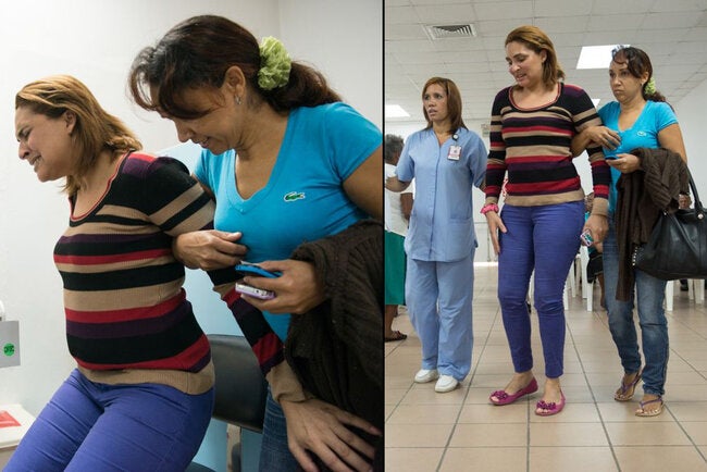 Encorvada: Una mujer llega a un centro de salud encorvada y con dificultades para caminar debido a los dolores en la espalda y en las articulaciones provocados por el virus chikungunya. El periodo de incubación de la enfermedad es, generalmente, entre tres y siete días luego de la picadura de un mosquito infectado.