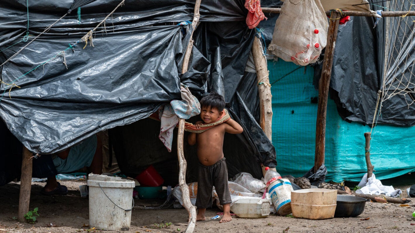En estos lugares es dificil acatar las recomendaciones de aislamiento y las medidas de bioseguridad para la contención de brotes. La comunidad vive hacinada, en casas improvisadas con palos y techos y paredes de plástico. Por dentro, las casas tienen un solo espacio, y por lo general están atiborradas de ropas viejas, juguetes rotos y hamacas que revelan el paso de los años y el uso. Además, por no contar con unidades sanitarias, el olor a excrementos está presente en el ambiente, y el agua potable es escasa para la preparación de alimentos y aun más para mantener la higiene corporal.