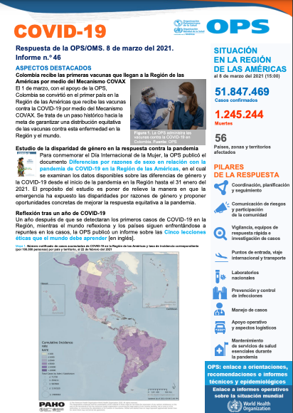 COVID-19 - Respuesta de la OPS/OMS Reporte 46 (8 de marzo del 2021)