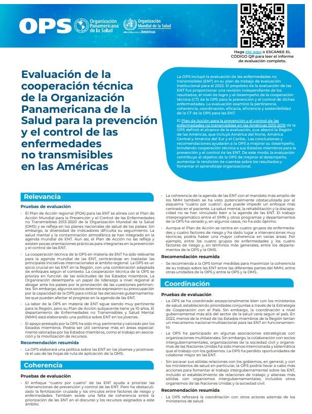 Evaluación de la Cooperación Técnica de la Organización Panamericana de la Salud para la Prevención y el Control de las Enfermedades No Transmisibles en las Américas