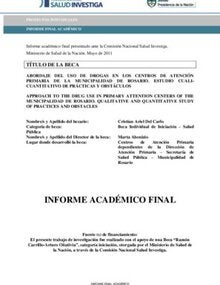 Abordaje del uso de drogas en los Centros de Atención Primaria de la Municipalidad de Rosario. Estudio cuali-cuantitativo de prácticas actuales y análisis de obstáculos a la implementación/profundización de Políticas de Reducción de Daños en Atención Prim