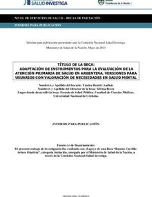 Adaptación de instrumentos para la evaluación de la atención primaria de salud en argentina. Versiones para usuarios con valoración de necesidades en salud mental