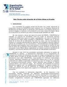 Nota técnica sobre situación de la Fiebre Aftosa en Ecuador