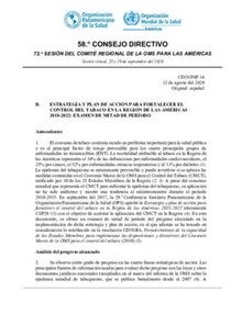 CD58/INF/14 - Informes de progreso sobre asuntos técnicos: B. Estrategia y plan de acción para fortalecer el control del tabaco en la Región de las Américas 2018-2022: Examen de mitad de período