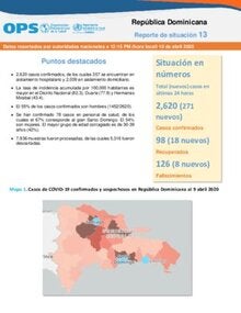 Reporte de situación 13 - República Dominicana - Datos reportados por autoridades nacionales - 10 de abril 2020