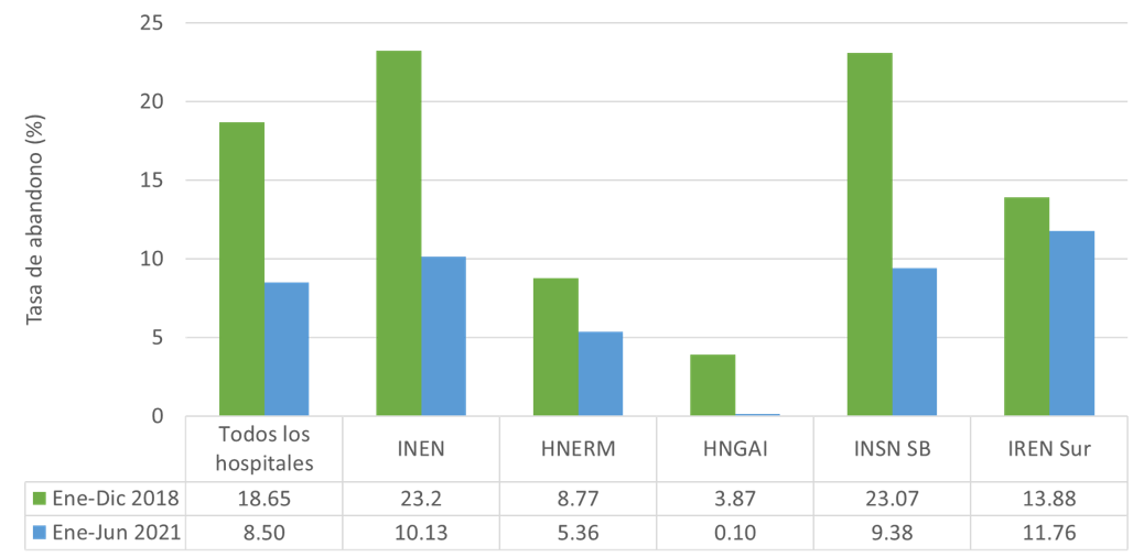 La conformación de Comités Institucionales de Abandono en los 5 hospitales principales de manejo de cáncer infantil en el país, constituye una estrategia fundamental para la prevención y seguimiento de los casos de pacientes con riesgo de abandono de tratamiento y que ha permitido la reducción de la tasa de abandono en el país.