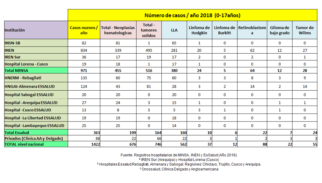 Gracias a la colaboración de la Organización Panamericana de la Salud, el Ministerio de Salud, las Instituciones prestadoras de atención en cáncer infantil y del Comité de Registro de la Iniciativa Mundial contra el cáncer infantil en Perú, se apoyó la creación del Registro Hospitalario de cáncer infantil en Noviembre de 2020.
