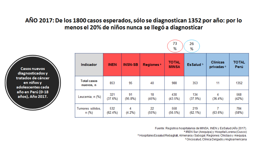 En el 2019, Perú fue seleccionado como el primer país focal de la región para la implementación de la Iniciativa Mundial contra el Cáncer Infantil. De acuerdo al Observatorio Global del Cáncer (Globocan) del 2020, se estima que en Perú 1800 casos nuevos casos de cáncer infantil deberían presentarse cada año, sin embargo, hasta el año 2020, nuestro país no contaba con un registro de base poblacional ni hospitalario exclusivo de cáncer pediátrico que nos permita conocer la sobrevida y mortalidad de cáncer infantil. En este contexto, los registros de cáncer son herramientas fundamentales en el control y evaluación de los resultados de diversas intervenciones y los esfuerzos dirigidos a reducir la morbilidad y la mortalidad.